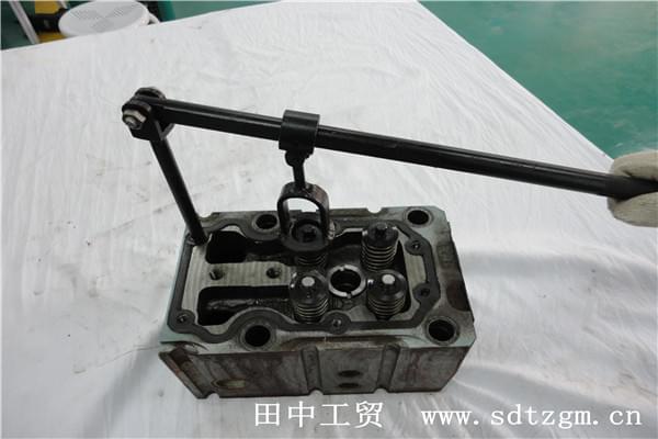 》安裝氣門彈簧時,采用同樣的方法壓下彈簧,裝上卡圈,松開壓縮器即可。