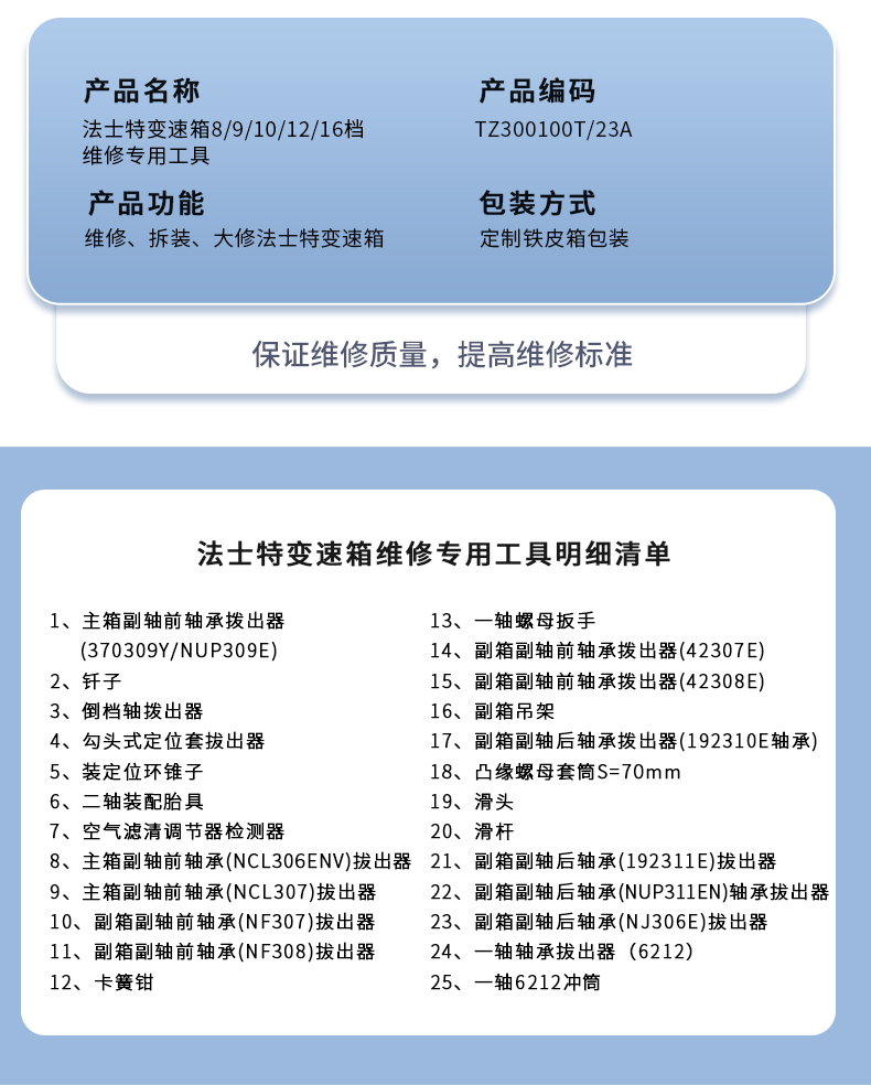 - 重汽變速箱HW13710維修工具包[重汽卡車(chē)供應(yīng)]