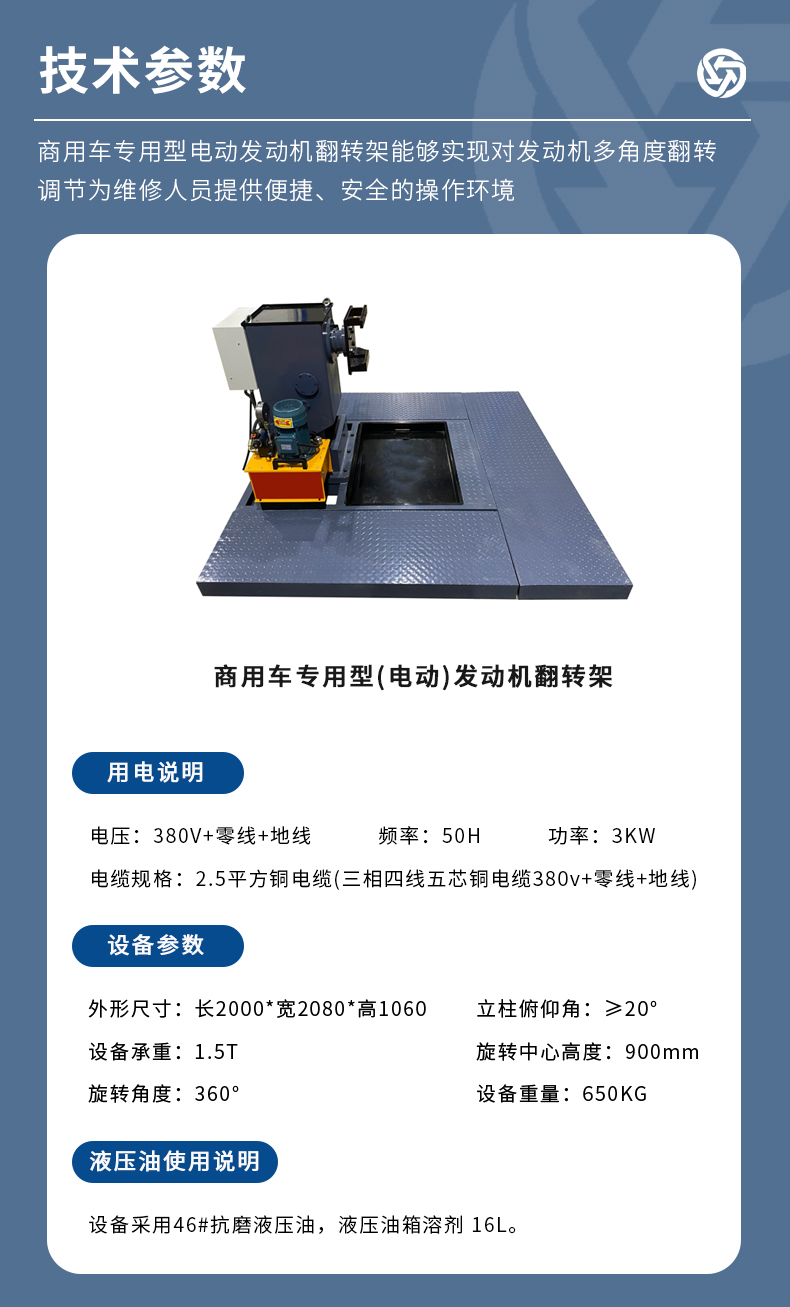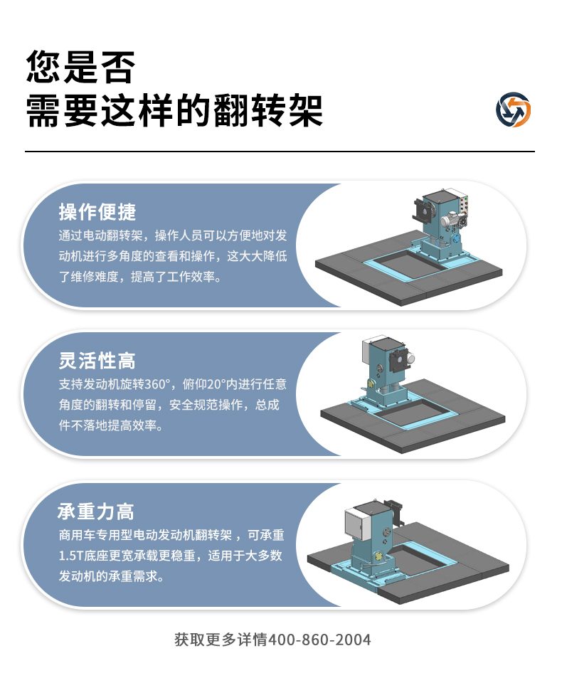 商用車專用型電動發(fā)動機(jī)翻轉(zhuǎn)架