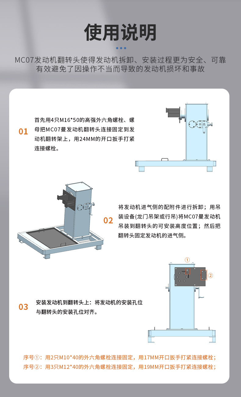 商用車專用型MC07發(fā)動機翻轉(zhuǎn)架【TZ101301】