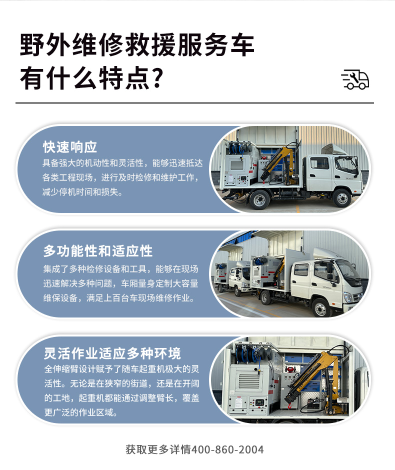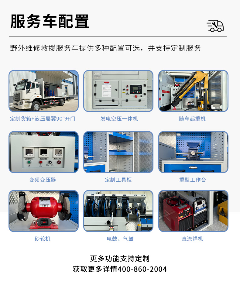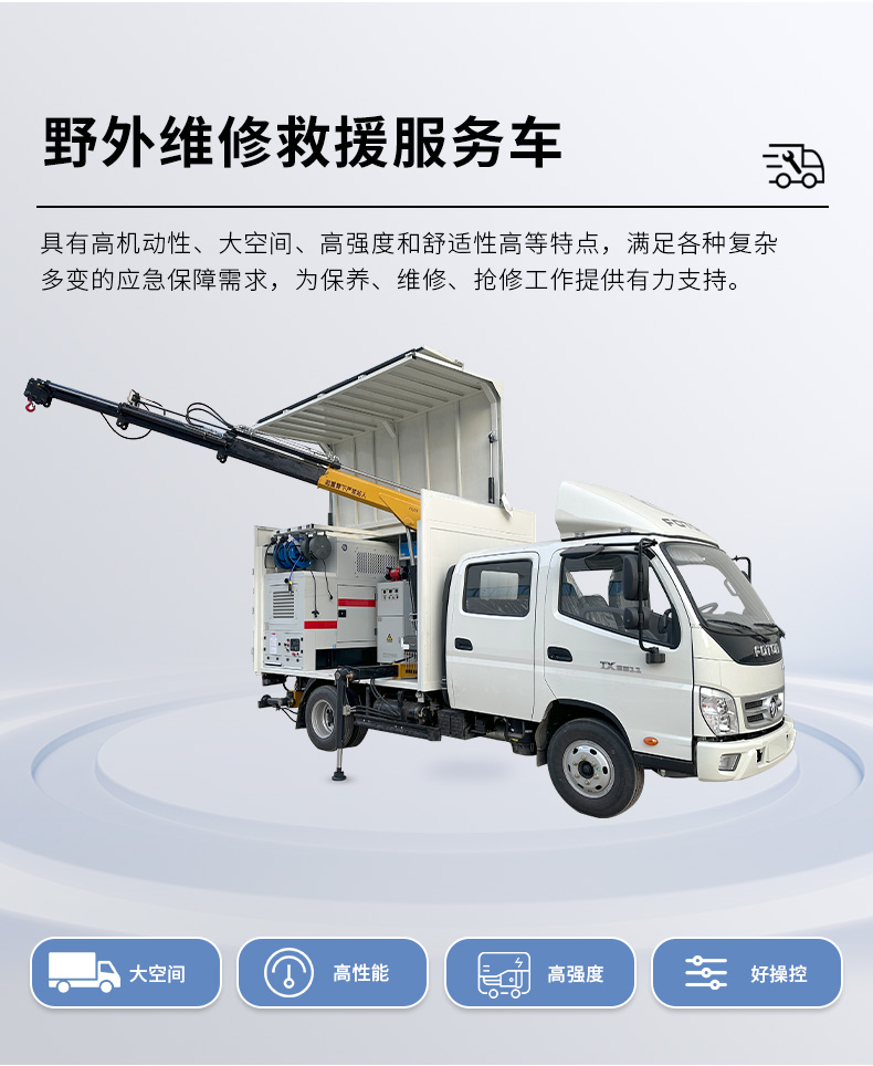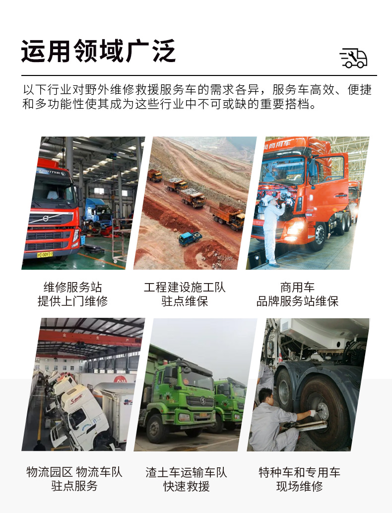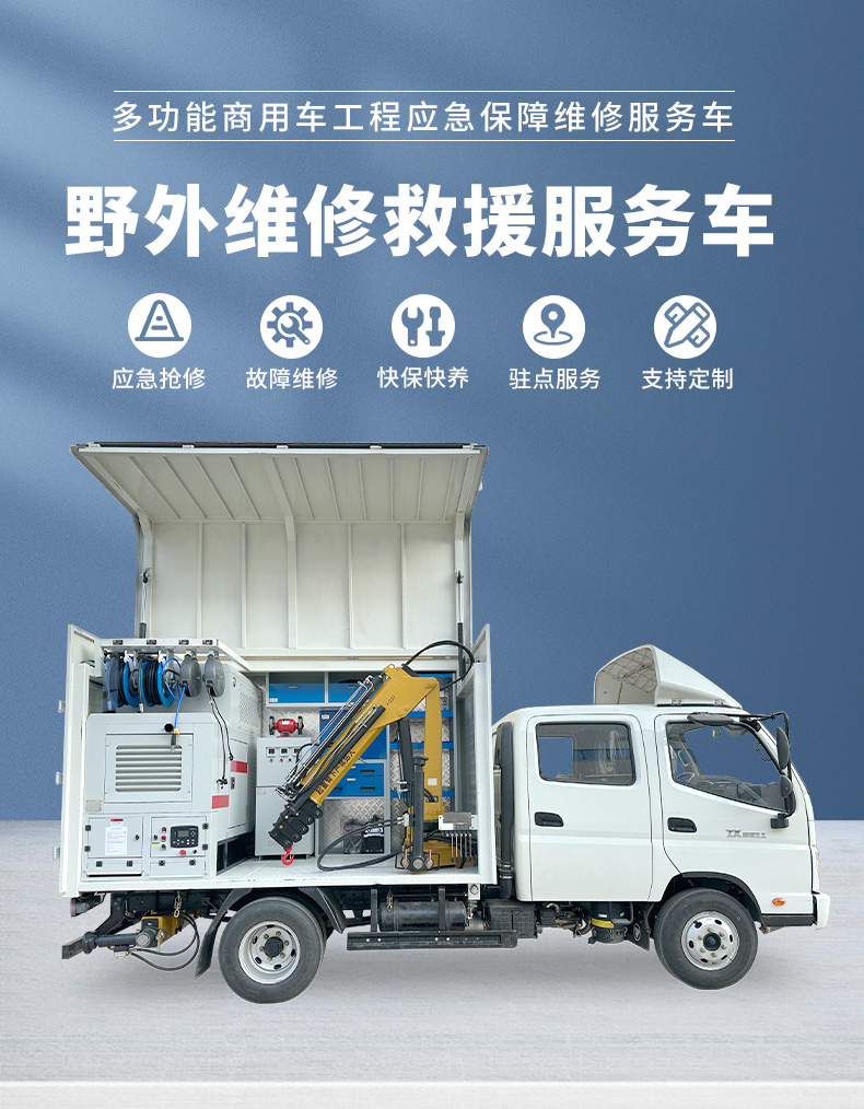產品說明:野外維修救援服務車配備吊機、發(fā)電空壓電焊一體機、潤滑油加注槍,適用于綜合修理廠、工程機械服務站、各卡車品牌服務站,可完成吊裝、日常保養(yǎng)、快修、駐點流動服務等。