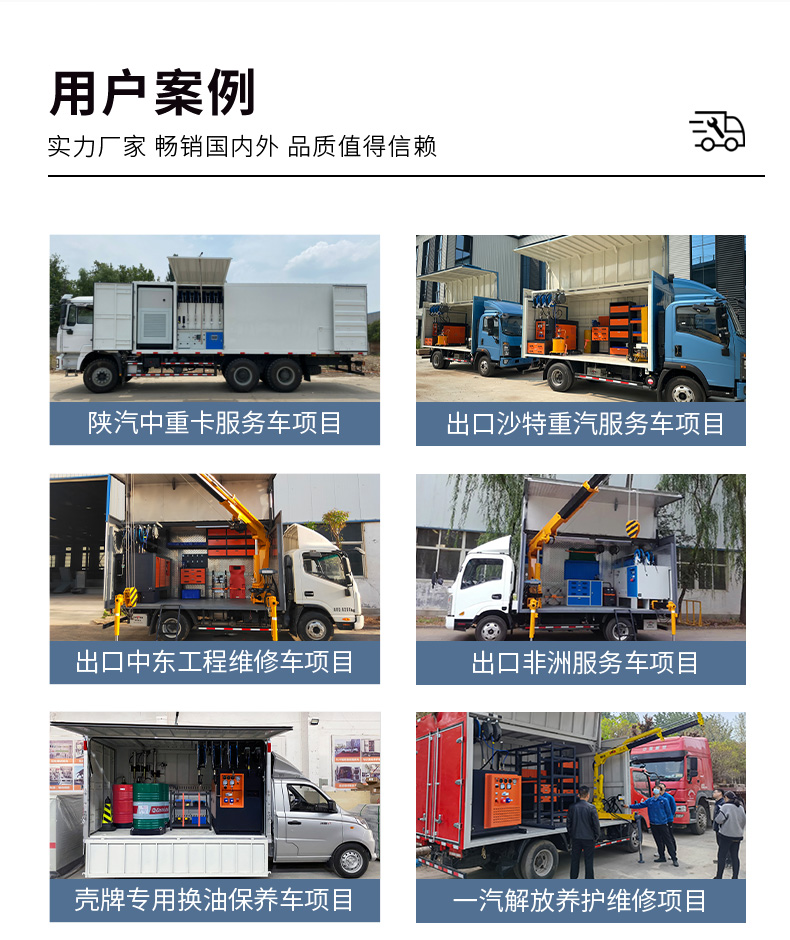 - 山東田中有十六年豐富的卡車野外維修作業(yè)服務車生產裝配經驗,專為物流、工程車隊等卡車大用戶制定快修養(yǎng)護救援服務車,以工業(yè)化快修保養(yǎng)理念,為卡車用戶提供便捷、迅速的養(yǎng)護維修服務。養(yǎng)護搶修服務車推崇卡車工業(yè)化快修保養(yǎng)理念,可完成卡車二級養(yǎng)護、快修、駐點服務等功能。