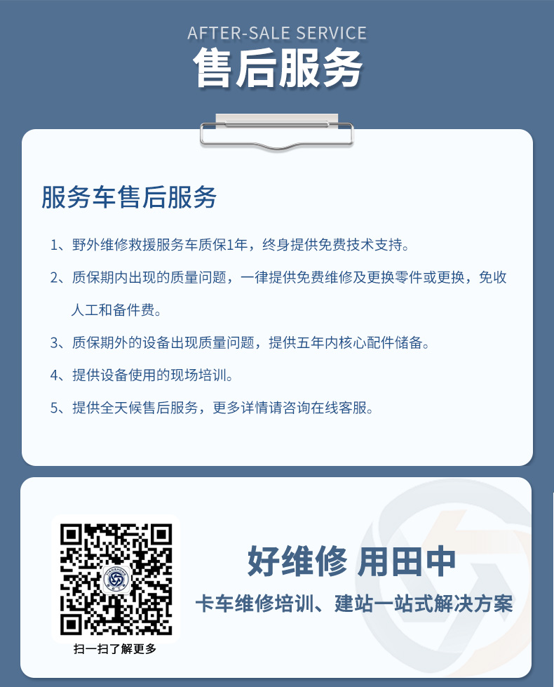- 山東田中有十六年豐富的卡車野外維修作業(yè)服務車生產裝配經驗,專門為物流、工程車隊等卡車大用戶制定快修養(yǎng)護救援服務車,以工業(yè)化快修保養(yǎng)理念,為卡車用戶提供便捷、迅速的養(yǎng)護維修服務。養(yǎng)護搶修服務車推崇卡車工業(yè)化快修保養(yǎng)理念,可完成卡車二級養(yǎng)護、快修、駐點服務等功能。