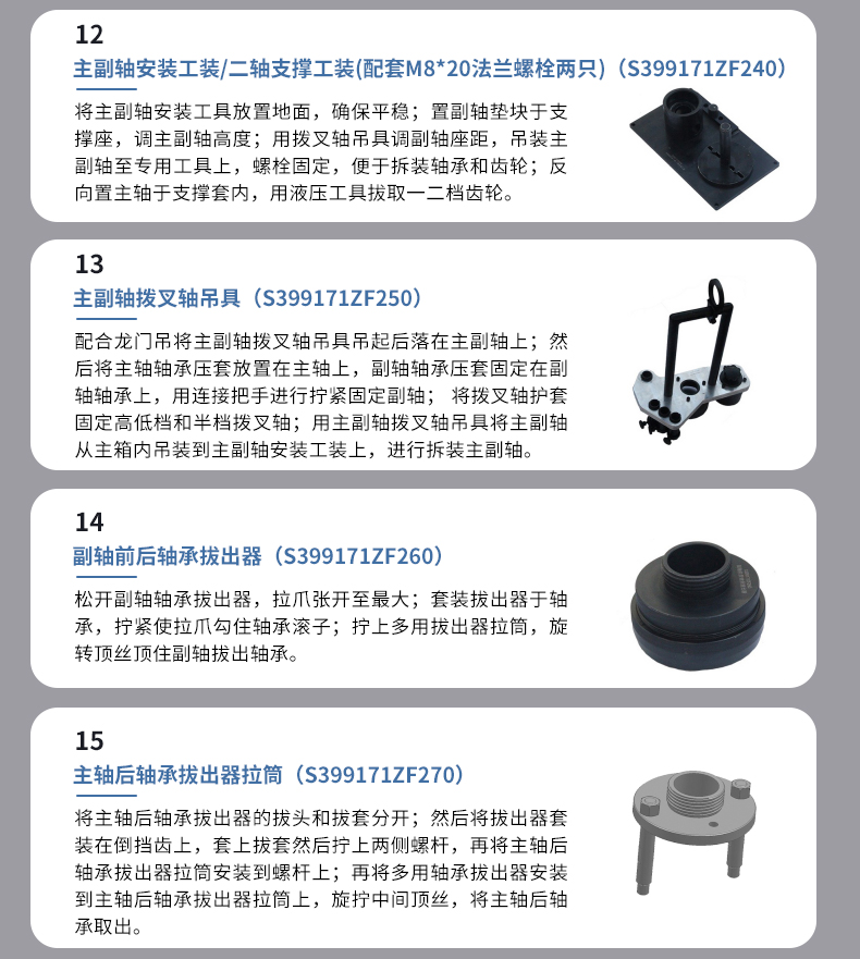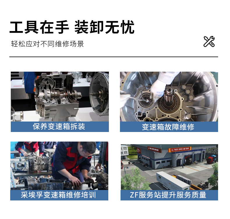 - 【ZF12檔變速箱維修專用工具【TZ300900L/22】是針對采埃孚變速箱而開發(fā)設(shè)計的一套產(chǎn)品,其操作簡單、拆裝方便,大大節(jié)約了人力、物力成本;滿足拆裝技術(shù)要求,使操作更加的規(guī)范化。】