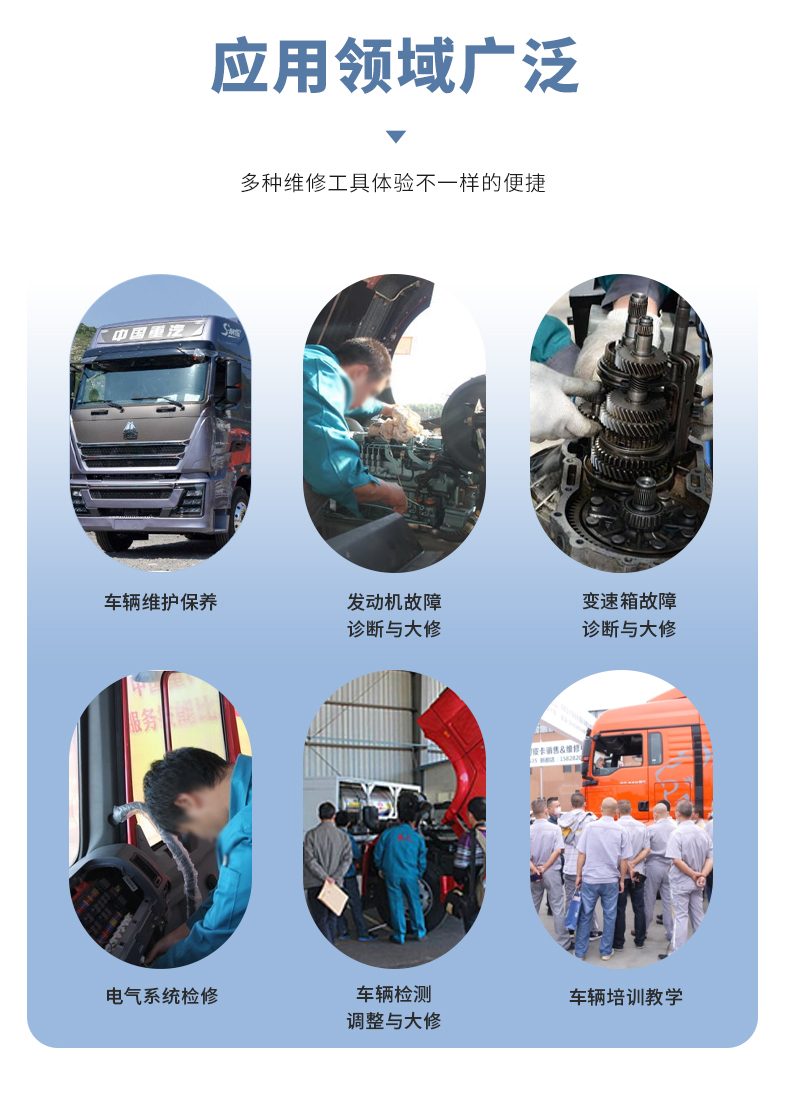 - 重汽豪沃T5G系列維修專用工具【ZZ1257N464GE1】是針對重汽豪沃T7H系列而開發(fā)設(shè)計的一套產(chǎn)品,其操作簡單、拆裝方便,大大節(jié)約了人力、物力成本;滿足拆裝技術(shù)要求,使操作更加的規(guī)范化。