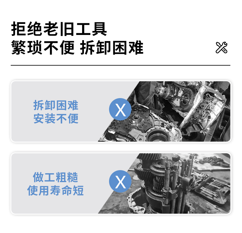 - S-AMT變速箱維修專用工具在日常維護(hù)保養(yǎng)和大修等特殊情況下,需要對變速箱進(jìn)行拆解,以便更換變速箱配附件,此時(shí)需要用到專用維修工具,進(jìn)行輔助拆裝。