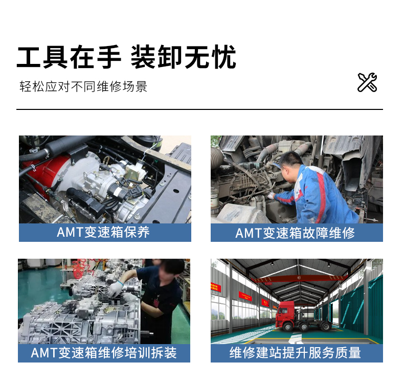 - S-AMT變速箱維修專用工具在日常維護保養(yǎng)和大修等特殊情況下,需要對變速箱進行拆解,以便更換變速箱配附件,此時需要用到專用維修工具,進行輔助拆裝。